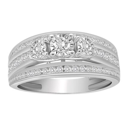 LADIES RING 0.75CT ROUND DIAMOND 10K WHITE GOLD
