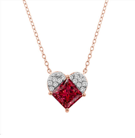 LADIES PENDANT WITH CHAIN 1.13CT ROUND/RUBY DIAMOND 14K ROSE GOLD (CENTER STONE RUBY PRINCESS -1CT) PC