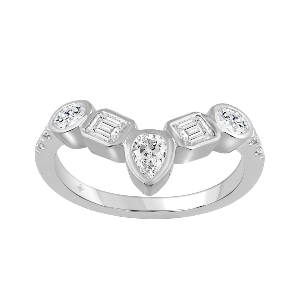 14K WHITE GOLD 1.00CT ROUND/EMERALD/OVAL/PEAR DIAMOND LADIES BAND (PEAR 1/5CT EMERALD 1/3CT OVAL 1/3CT)