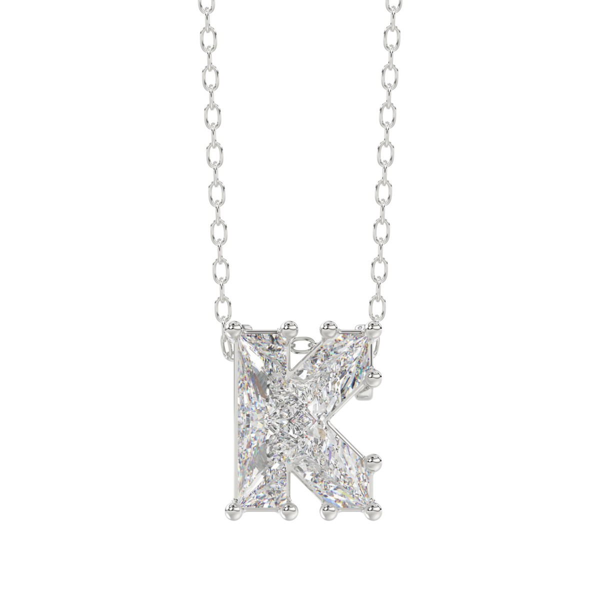 14K WHITE GOLD 1 1/2CT FANCY CUT ALPHABET DIAMOND LADIES PENDANT WITH CHAIN