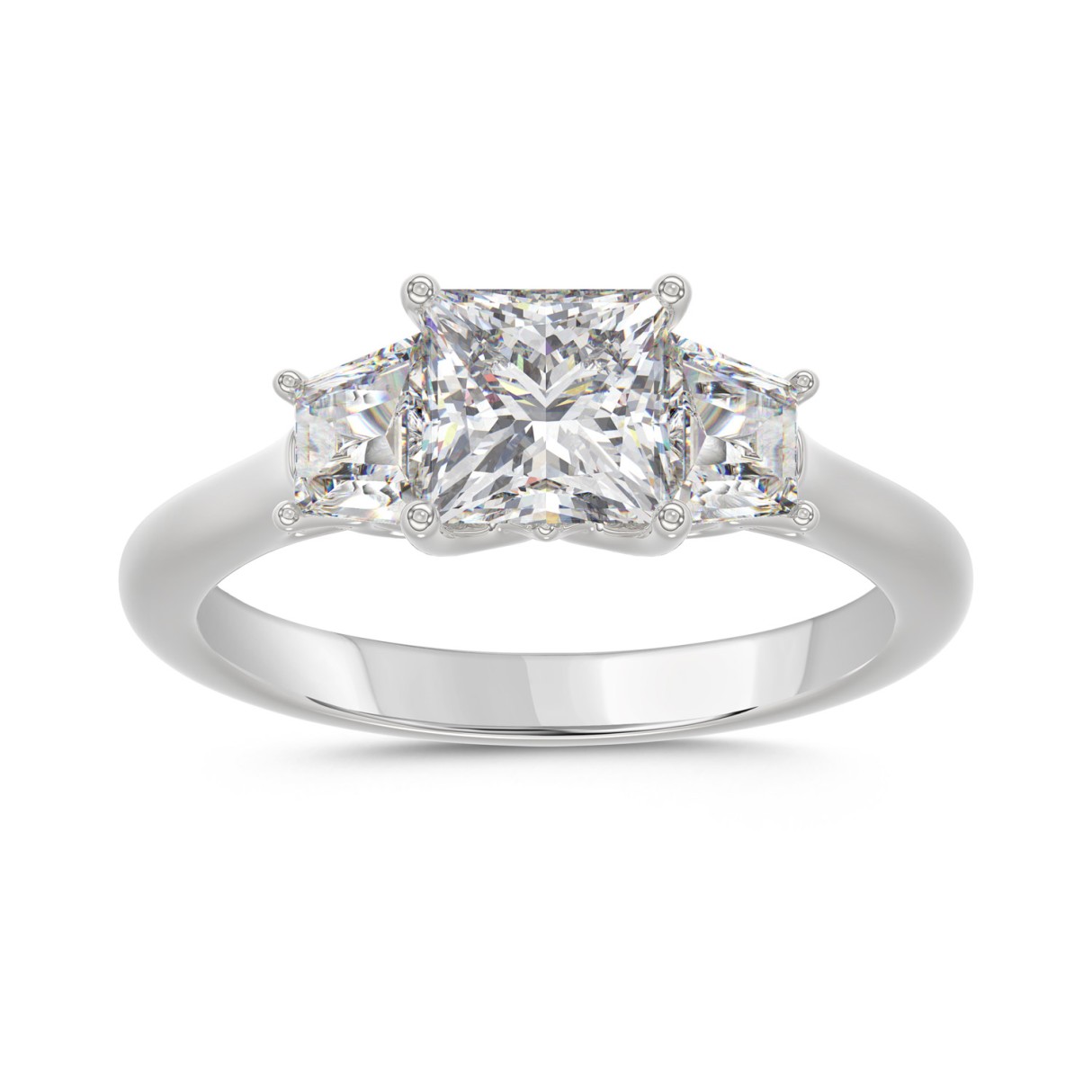 14K WHITE GOLD 1 3/4CT PRINCESS/TRAPEZOID DIAMOND LADIES RING (CENTER STONE PRINCESS DIAMOND 1 1/4CT)