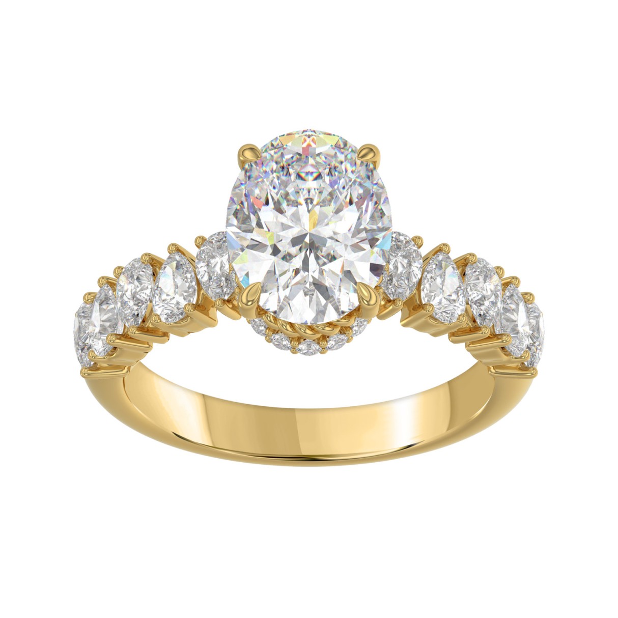 14K YELLOW GOLD 2 3/4CT ROUND/OVAL/PEAR DIAMOND LADIES RING (CENTER STONE OVAL DIAMOND 2CT)