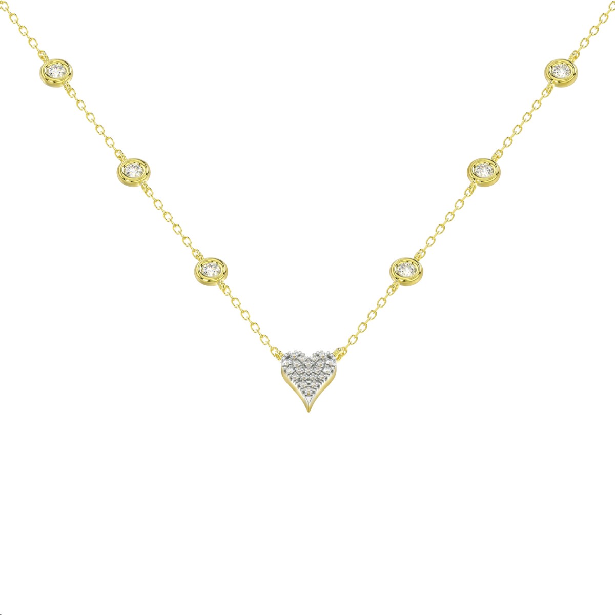 Elegant 10K Yellow Gold 0.20CT Round Diamond Heart Necklace For Women