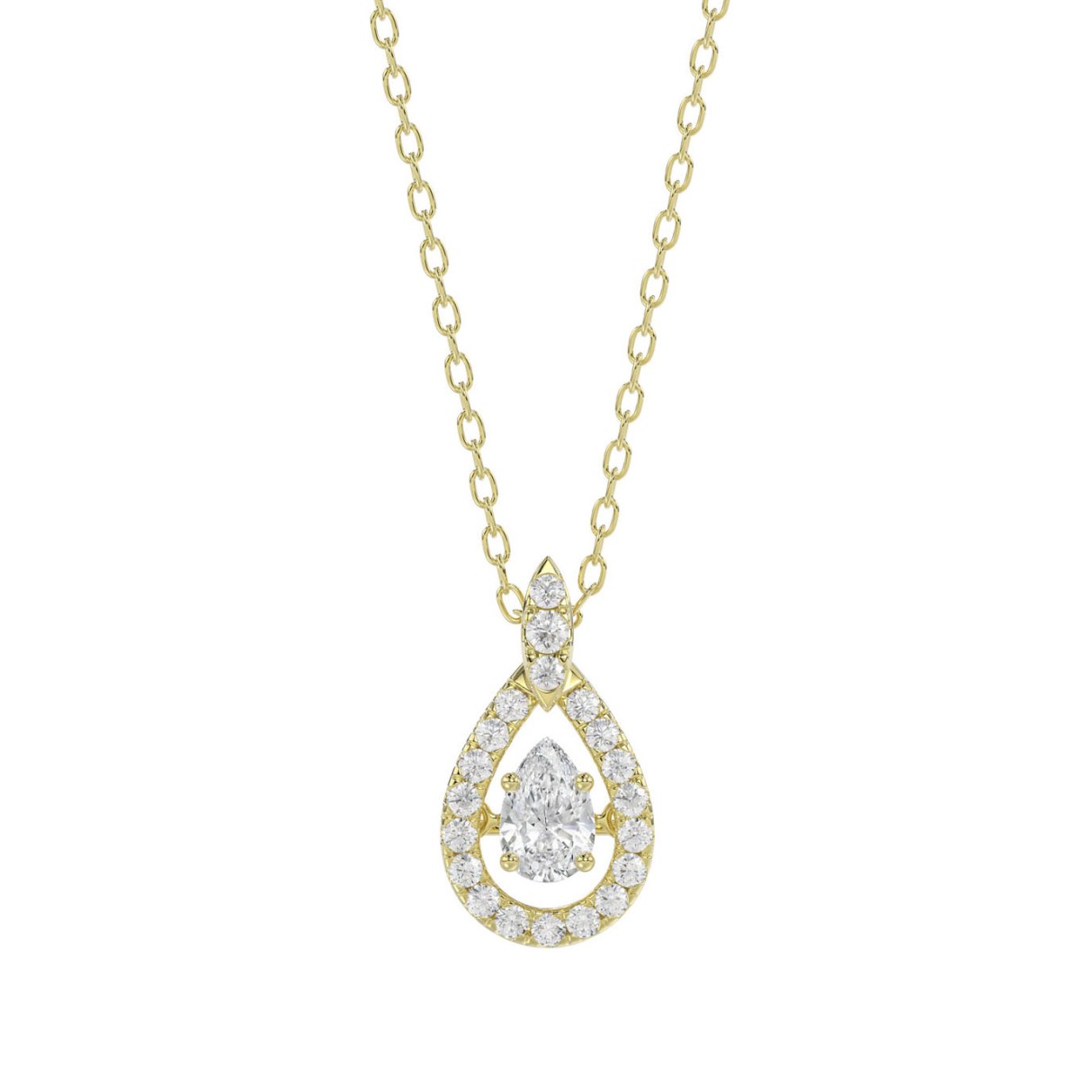 LADIES DANCING DIAMOND PENDANT WITH CHAIN 3/4CT ROUND DIAMOND 14K YELLOW GOLD (CENTER STONE PEAR DIAMOND 1/2CT)