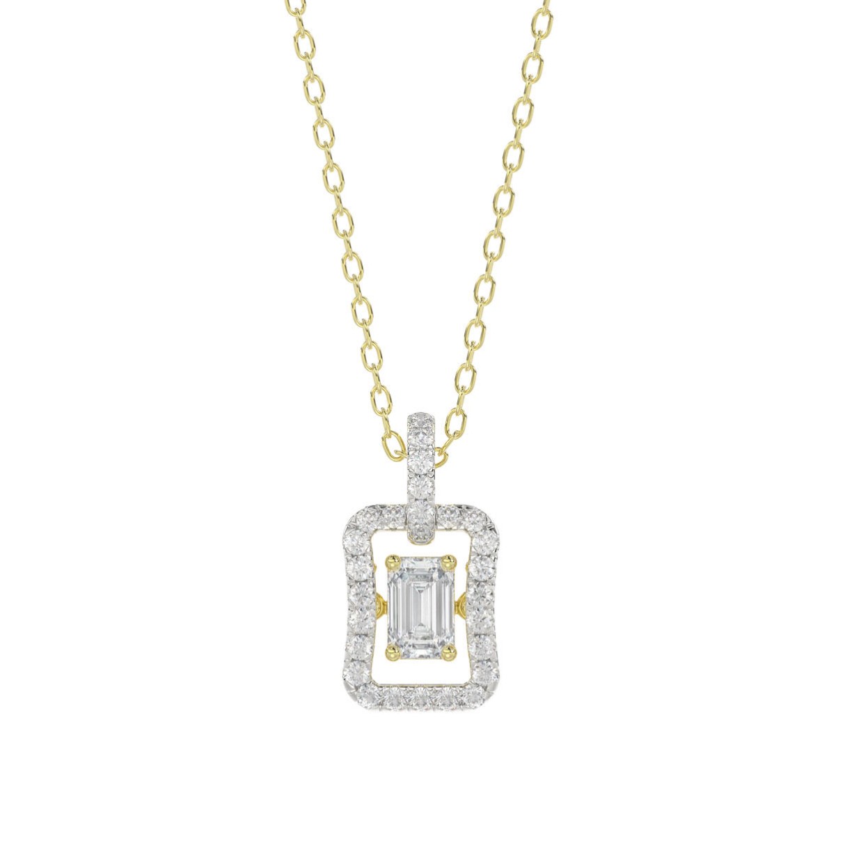 LADIES DANCING DIAMOND PENDANT WITH CHAIN 3/4CT ROUND/EMERALD DIAMOND 14K YELLOW GOLD (CENTER STONE EMERALD DIAMOND 1/2CT)