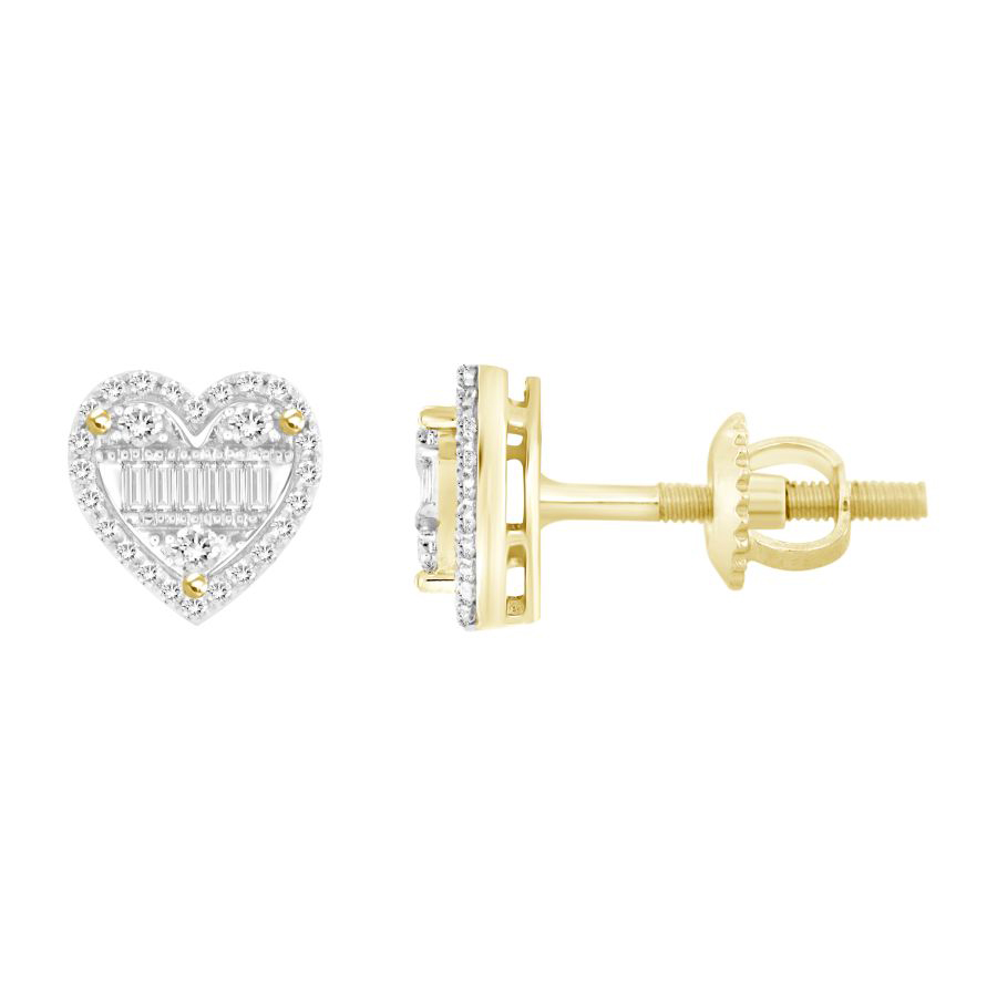 LADIES EARRINGS 0.25CT ROUND/BAGUETTE DIAMOND 10K YELLOW GOLD