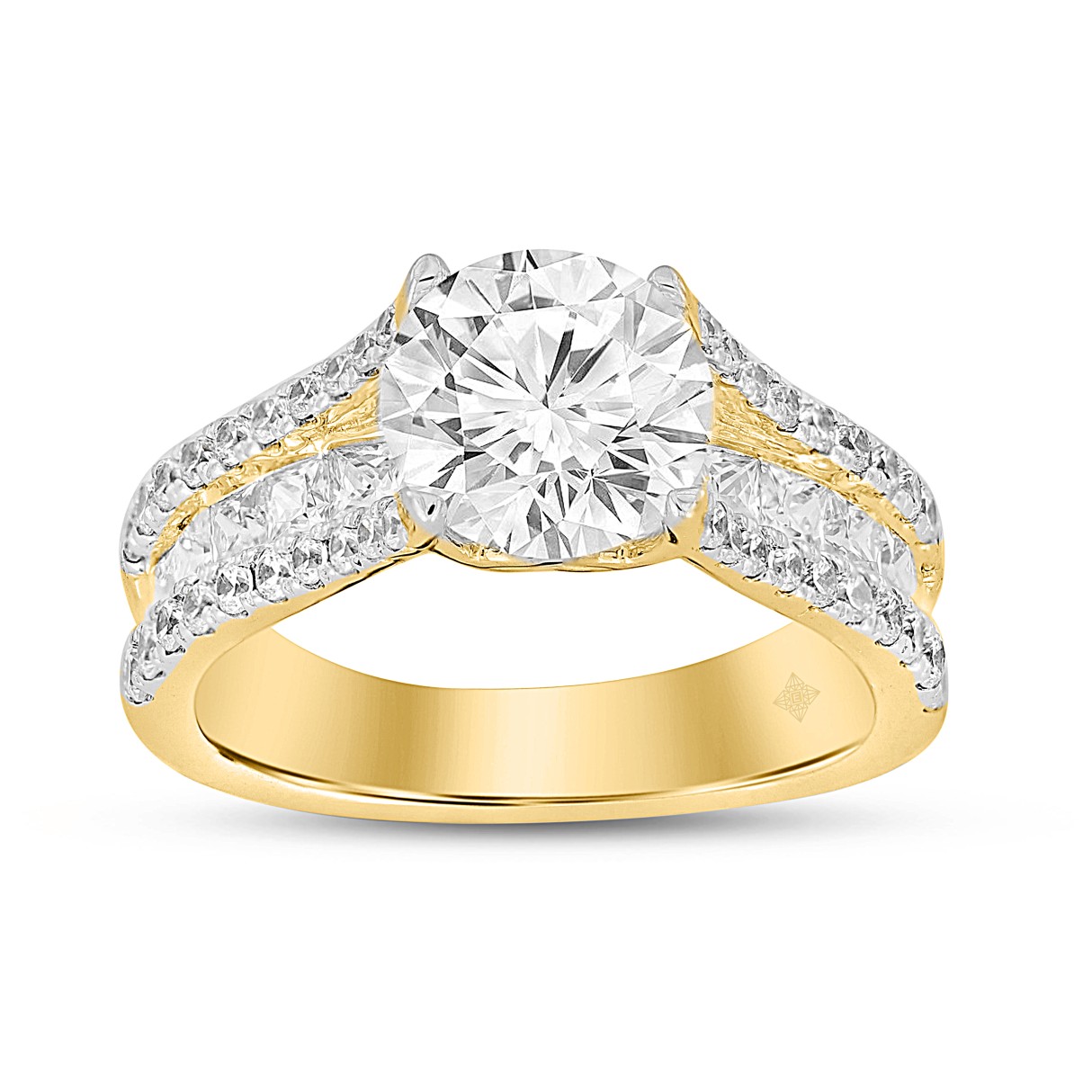 LADIES RING 3 1/2CT ROUND DIAMOND 14K YELLOW GOLD (CENTER STONE ROUND DIAMOND 2CT )
