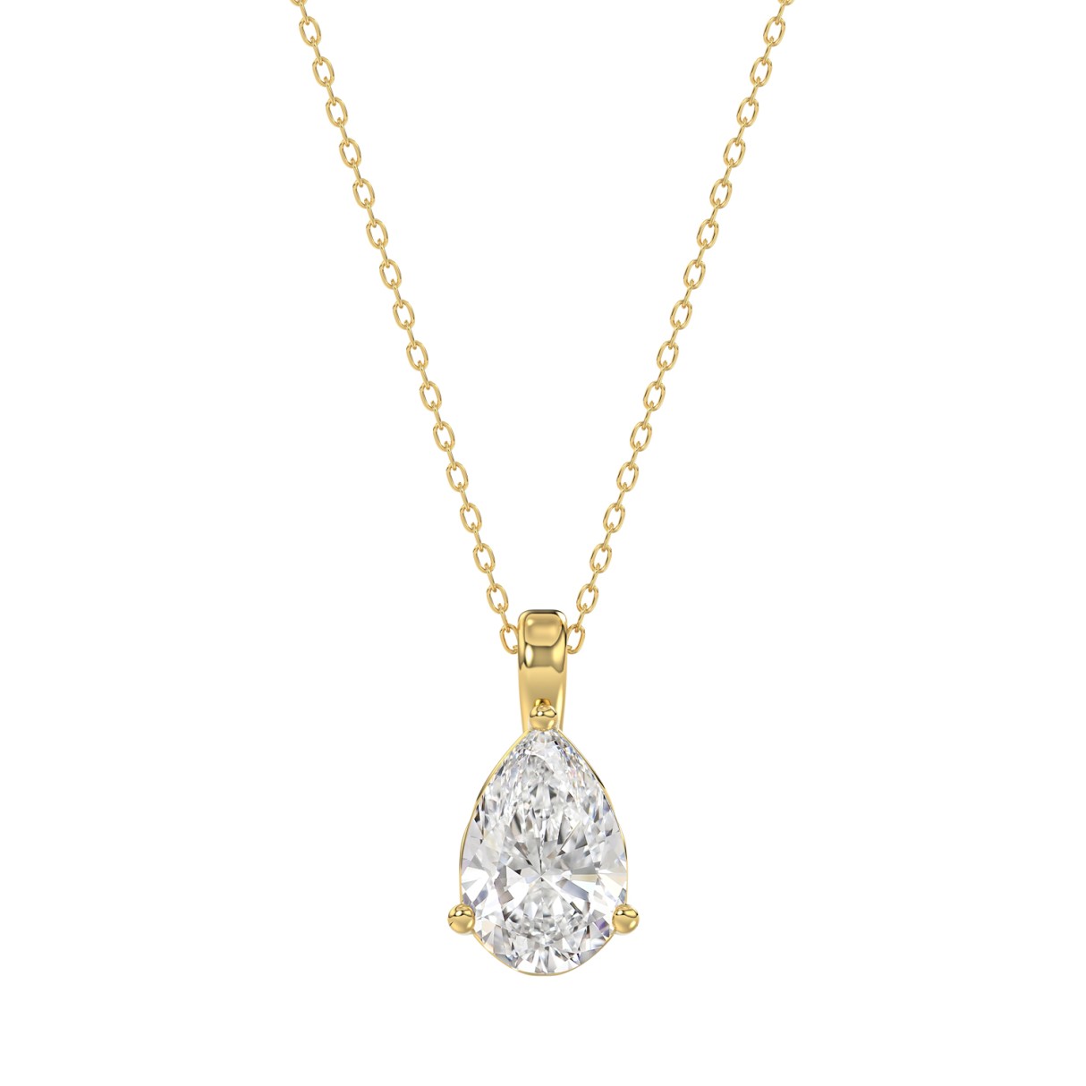 LADIES SOLITAIRE PENDANT WITH CHAIN 1CT PEAR DIAMOND 14K YELLOW GOLD