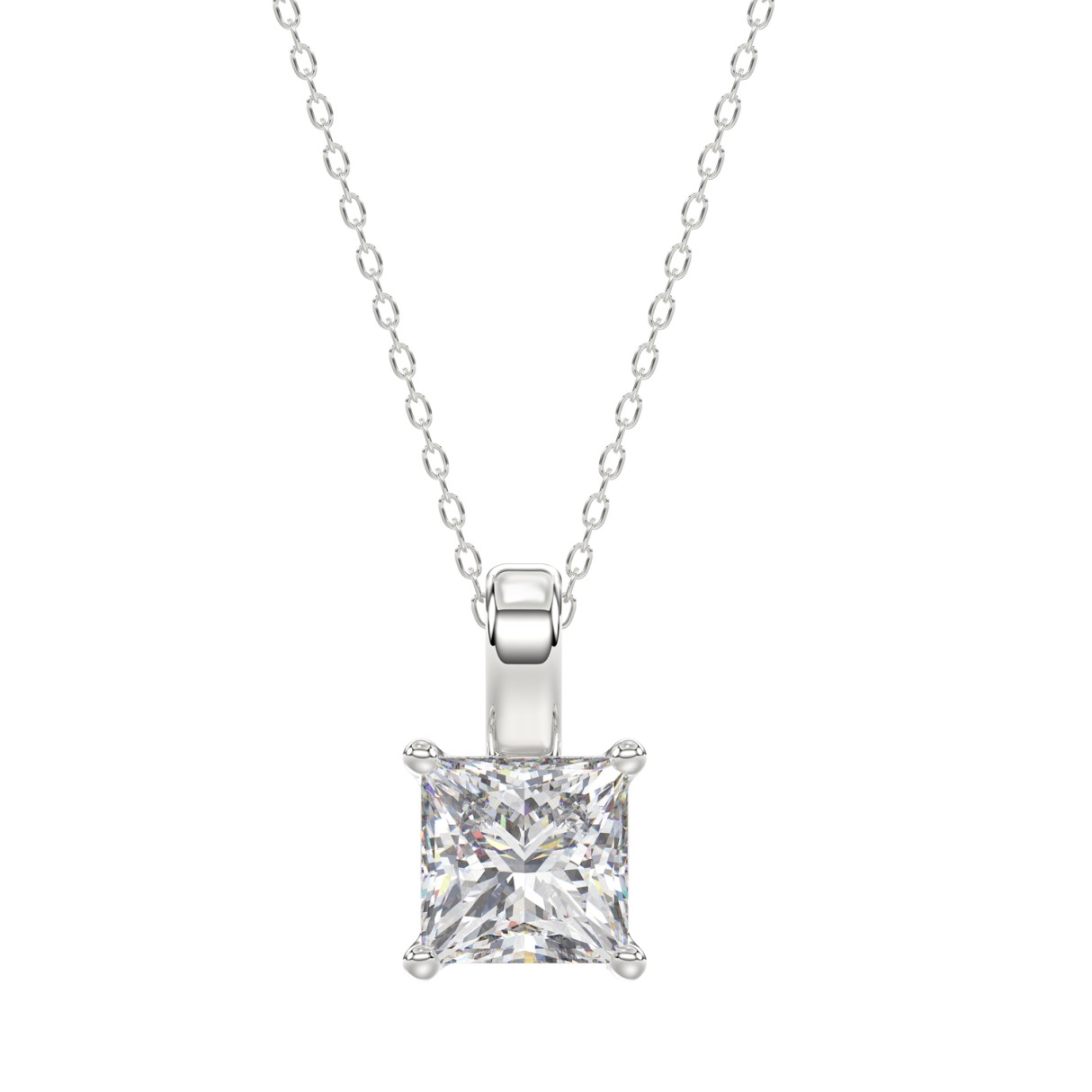 LADIES SOLITAIRE PENDANT WITH CHAIN 3CT PRINCESS DIAMOND 14K WHITE GOLD