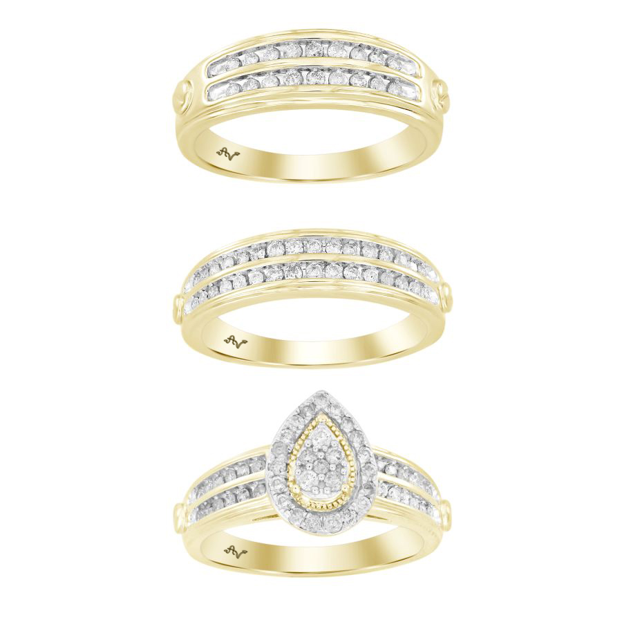 LADIES TRIO SET 1.00CT ROUND DIAMOND 10K YELLOW GOLD