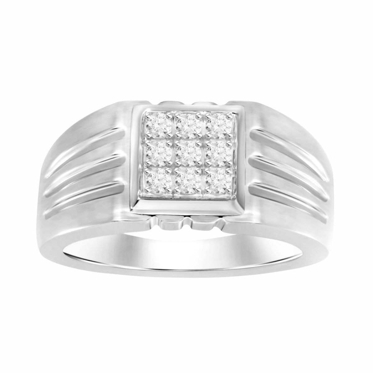 Sterling Silver Diamond Ring For Men 0.35Ct Round Cut Square Cluster Mens Ring Fine Jewelry Gift For Him