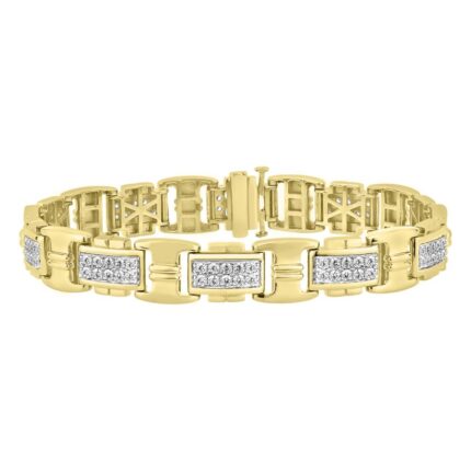 MEN’S BRACELET 3.65CT ROUND DIAMOND 10K YELLOW GOLD